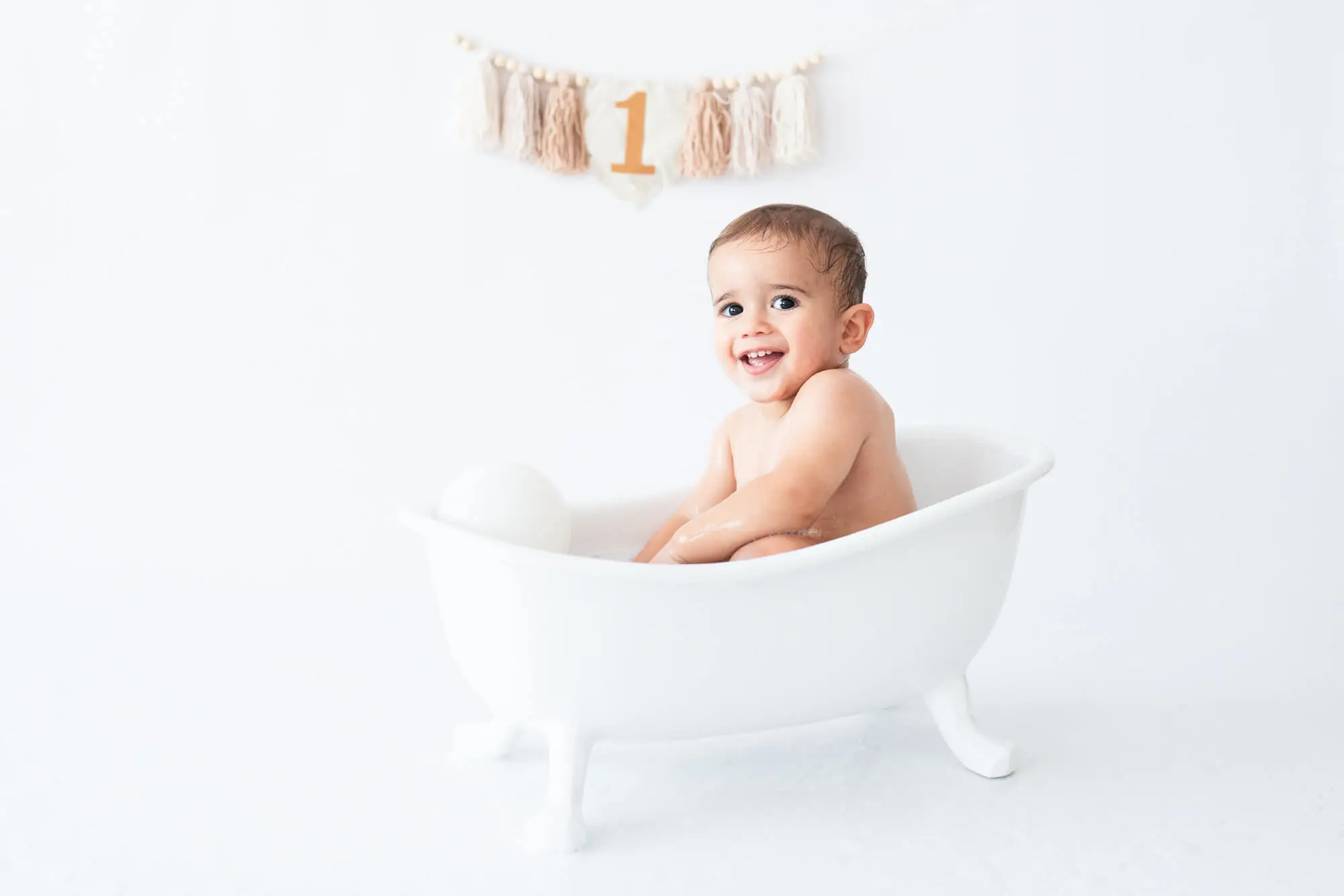After the cake smash, we finish the session with a warm bubble bath in a mini tub, which adds even more variety and cuteness to your gallery.