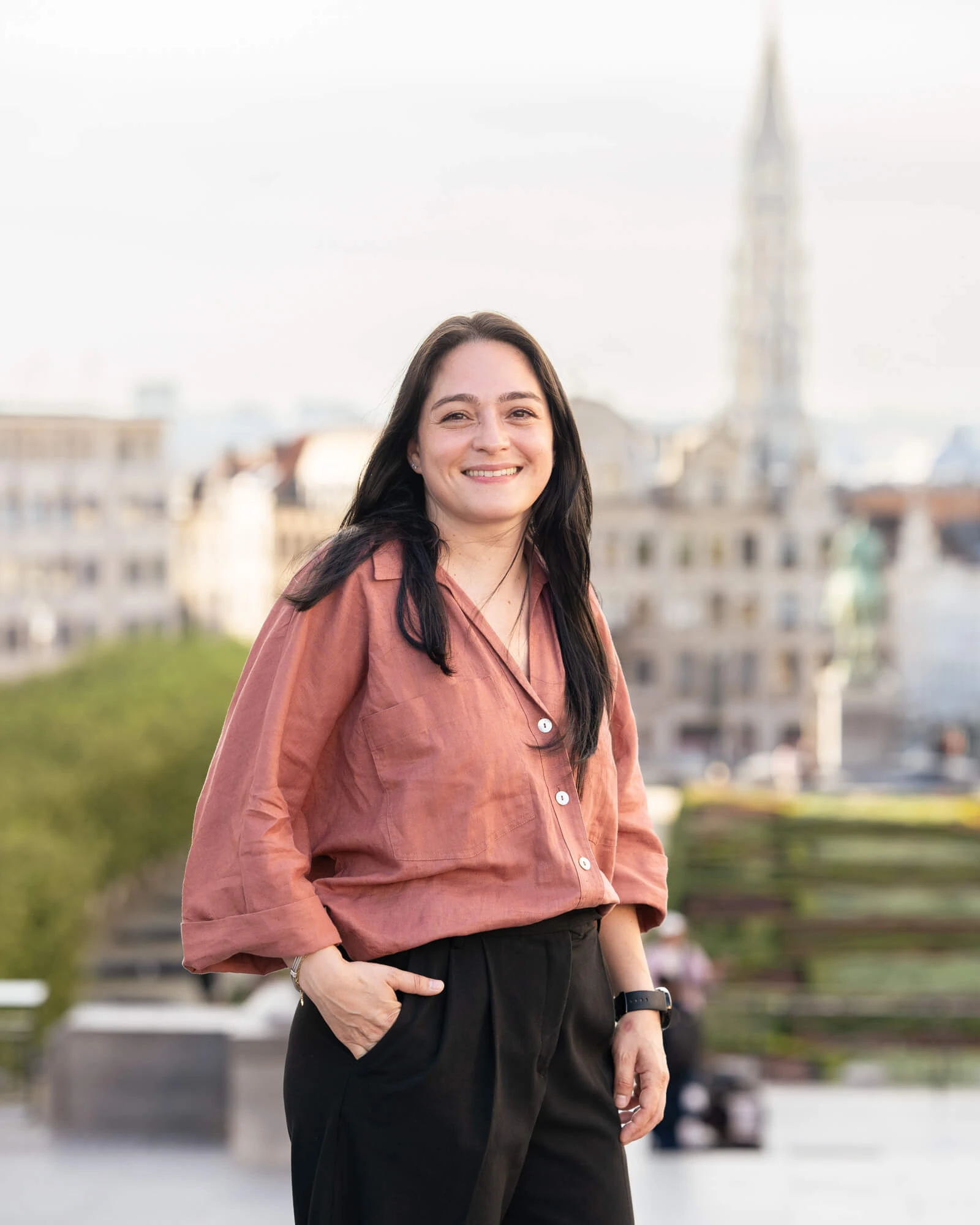Prefer a more natural, spontaneous vibe? An outdoor session might be the better fit. With the right location, your photos can feel vibrant, relaxed and full of life. If your business is linked to Brussels, choosing a spot in the city—like Parc du Cinquantenaire, Mont des Arts, or a charming street—can give your portraits a distinctive local flair.